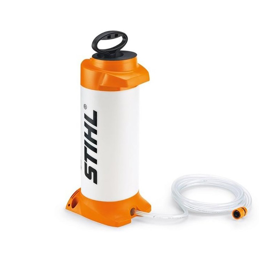 Pressurised water container for mobile water supply ensures a clean wet cut without creating dust, even on construction sites with no water connection.